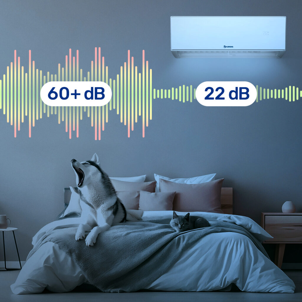 Dobry sen wpływa na to, jak wypoczęty i pełen energii czujesz się następnego dnia, a nawet delikatny hałas w tle może obniżyć jego jakość. Klimatyzator NØRDIS NOVA pracuje niezwykle cicho — tylko 22 dB — umożliwiając korzystanie z chłodnego, świeżego powietrza w ciepłe letnie noce bez zakłóceń i niepożądanych dźwięków.