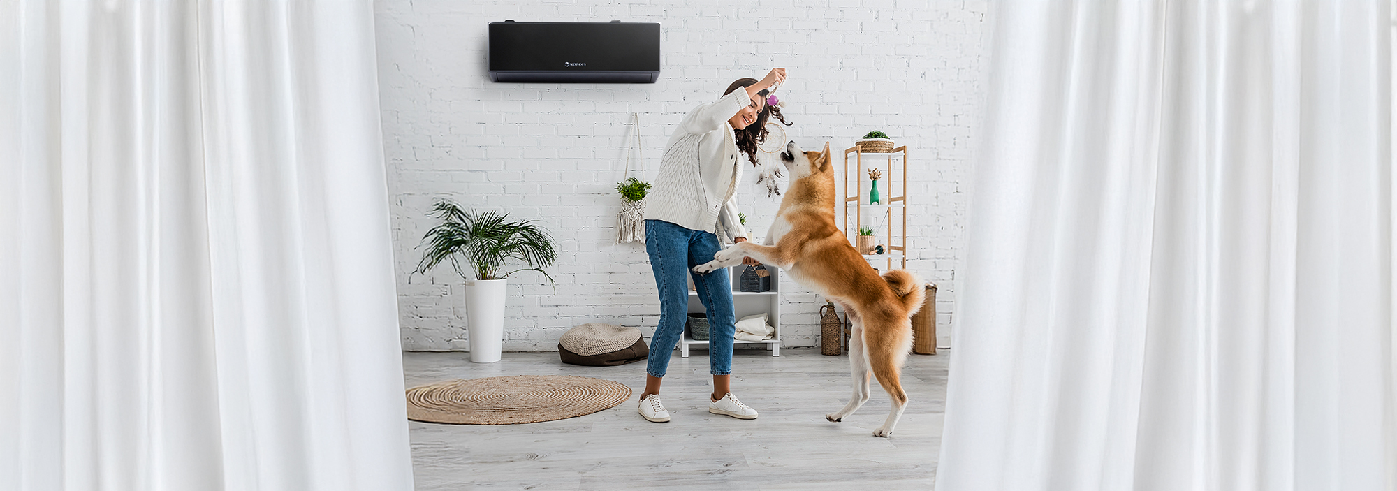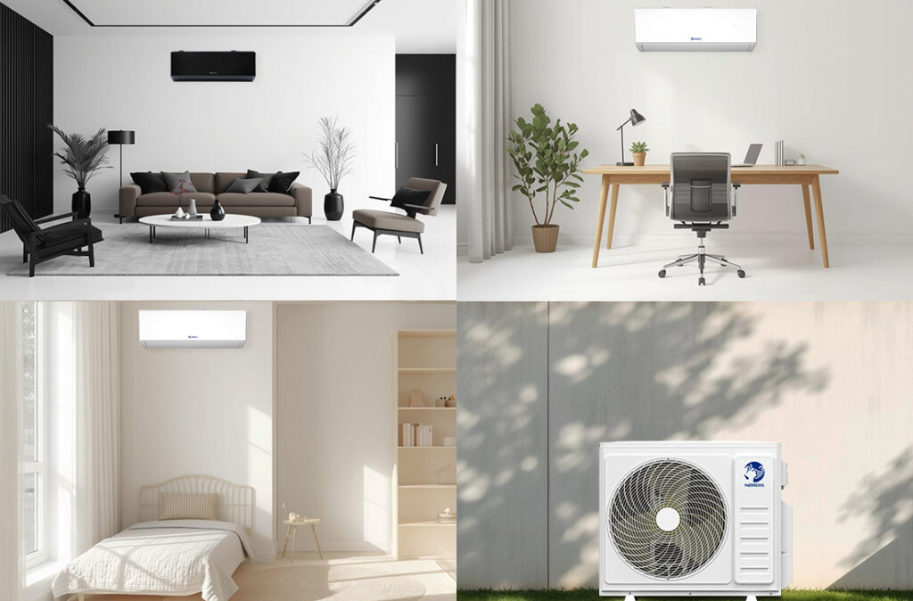 Klimatyzator NØRDIS NOVA jest dostępny w dwóch eleganckich kolorach — białym i czarnym. Niezależnie od stylu wnętrza — nowoczesnego, klasycznego czy minimalistycznego — urządzenie harmonijnie i naturalnie wkomponowuje się w każdą przestrzeń.