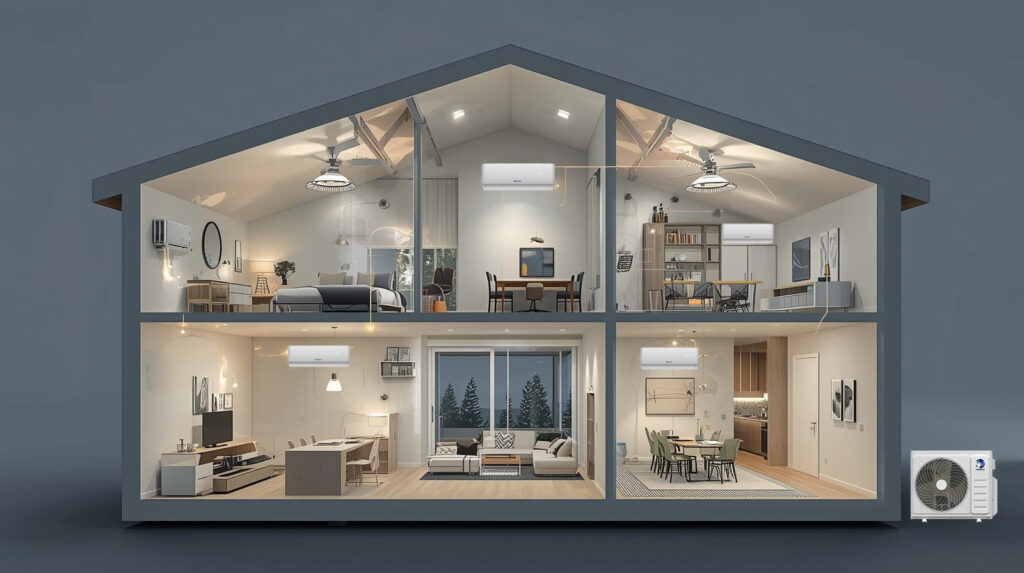 System umożliwia podłączenie do pięciu jednostek wewnętrznych do jednej jednostki zewnętrznej, zapewniając komfortowy mikroklimat w wielu pomieszczeniach jednocześnie. Rozwiązanie to jest szczególnie korzystne dla mieszkań, biur i hoteli, gdzie istotna jest wysoka efektywność energetyczna oraz estetyczny wygląd elewacji budynku. Centralne sterowanie pozwala na bardziej efektywne rozprowadzanie energii grzewczej i chłodniczej pomiędzy pomieszczeniami, ograniczając zużycie energii elektrycznej i utrzymując stabilną temperaturę w całym obiekcie.