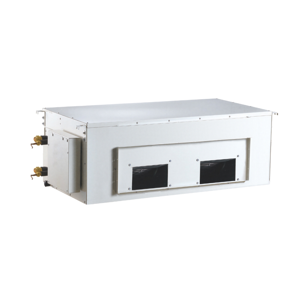 Jednostka wewnętrzna NØRDIS VRF typu kanałowego o wysokim sprężu statycznym to profesjonalne rozwiązanie do większych przestrzeni lub układów wielopomieszczeniowych. Zapewnia mocny nawiew o sprężu statycznym do 300 Pa, możliwość podłączenia wielu wylotów powietrza, doprowadzenie świeżego powietrza oraz skuteczną filtrację (filtr wstępny, filtr PP, opcjonalny moduł jonów srebra).
