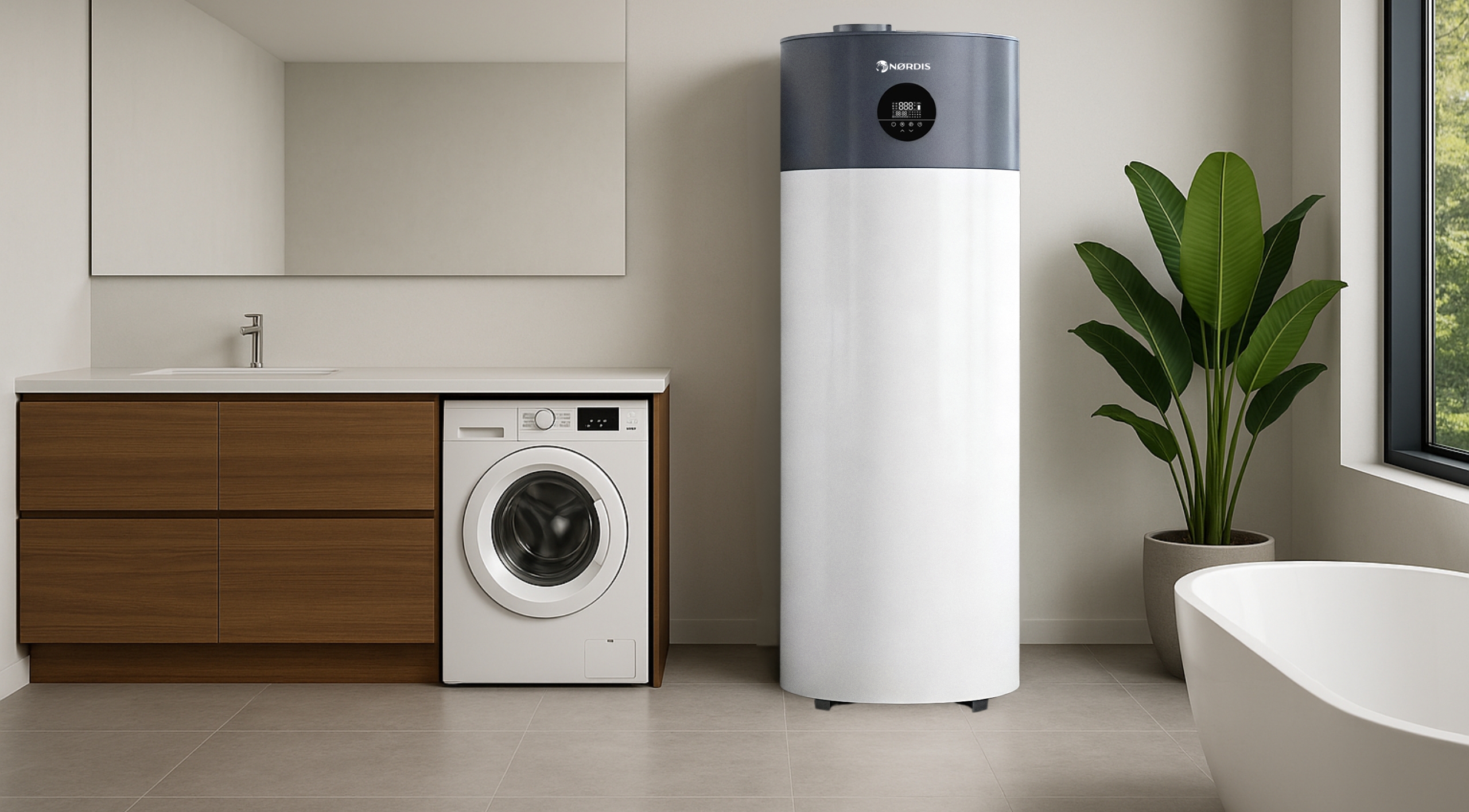 Seria NØRDIS TOR została zaprojektowana do czegoś więcej niż tylko podgrzewania wody — umożliwia płynną współpracę z kolektorami słonecznymi, zapewniając dodatkowy poziom efektywności i zrównoważonego użytkowania energii. Kluczowym elementem jest zintegrowany solarny wymiennik ciepła wykonany z falistej stali nierdzewnej SUS316. Dzięki całkowitej powierzchni 1 m² oraz zoptymalizowanej geometrii zapewnia on szybkie i wydajne przekazywanie energii słonecznej do zasobnika ciepłej wody użytkowej. Oznacza to możliwość pozyskiwania i magazynowania darmowej, odnawialnej energii bezpośrednio ze słońca, co znacząco ogranicza zapotrzebowanie na energię elektryczną.